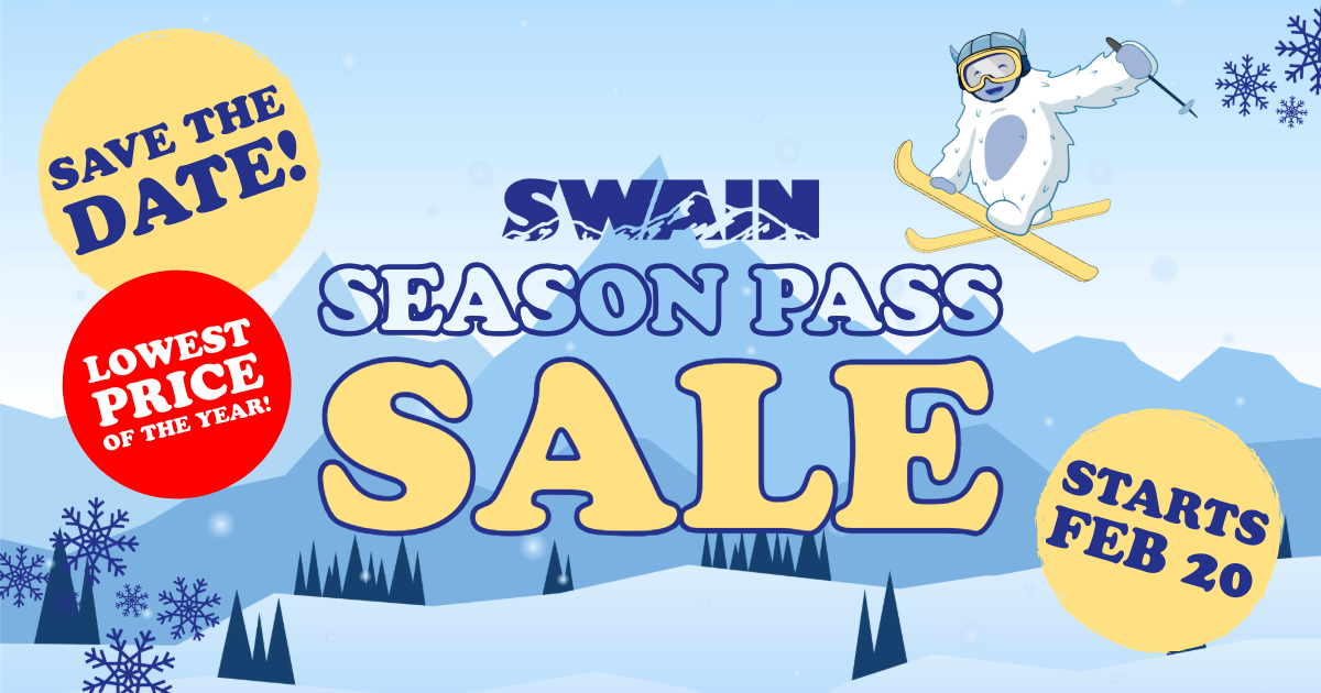 Eddie the Yeti is calling all snow lovers, it’s almost time for the BIGGEST season pass sale of the year! Score the best price on your Swain Resort Season Pass and unlock unlimited skiing for the rest of this season AND all of the 2026-27 season!